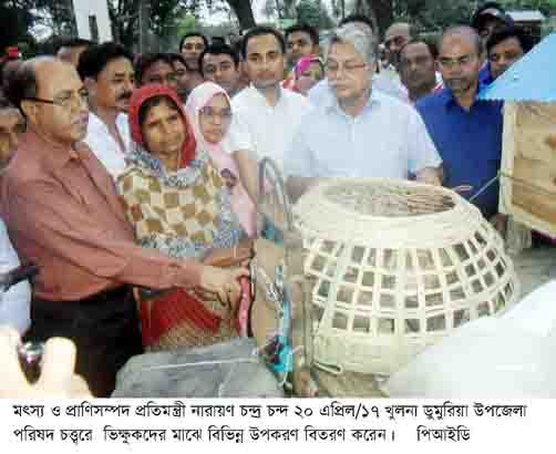ডুমুরিয়া উপজেলাকে ভিক্ষুকমুক্ত ঘোষণা ও তালিকাভূক্ত ভিক্ষুকদের পুনর্বাসনের উপকরণ বিতরণ অনুষ্ঠান আজ বিকেলে খুলনা ডুমুরিয়া উপজেলা পরিষদ মিলনায়তনে অনুষ্ঠিত হয়। এতে প্রধান অতিথি হিসেবে উপস্থিত ছিলেন মৎস্য ও প্রাণিসম্পদ প্রতিমন্ত্রী নারায়ণ চন্দ্র চন্দ।