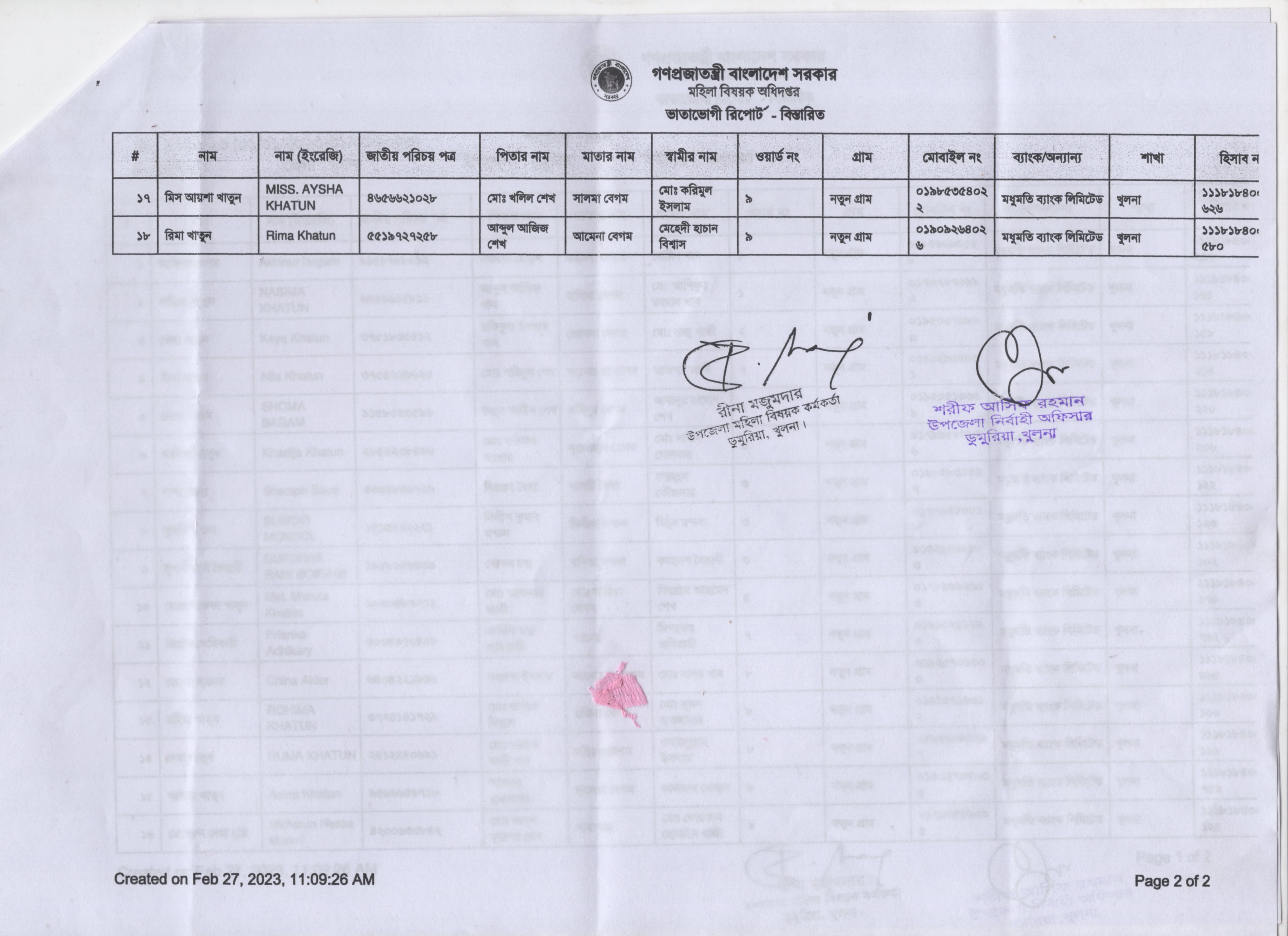 | 5. | সুপ্রিয়া মন্ডল | স্বামী-উজ্জ্বল রায় | র্মিজাপুর | ০৪ |
