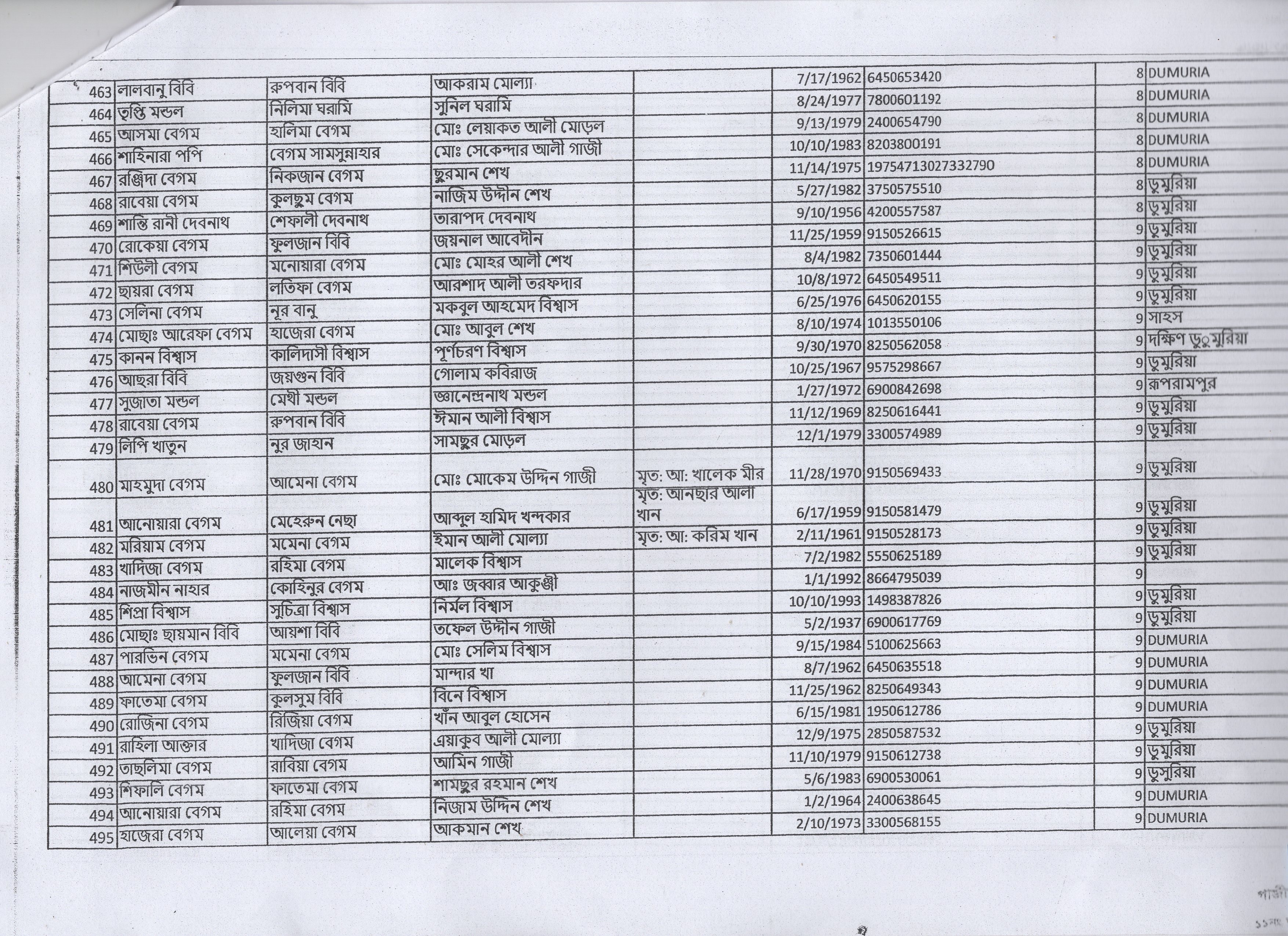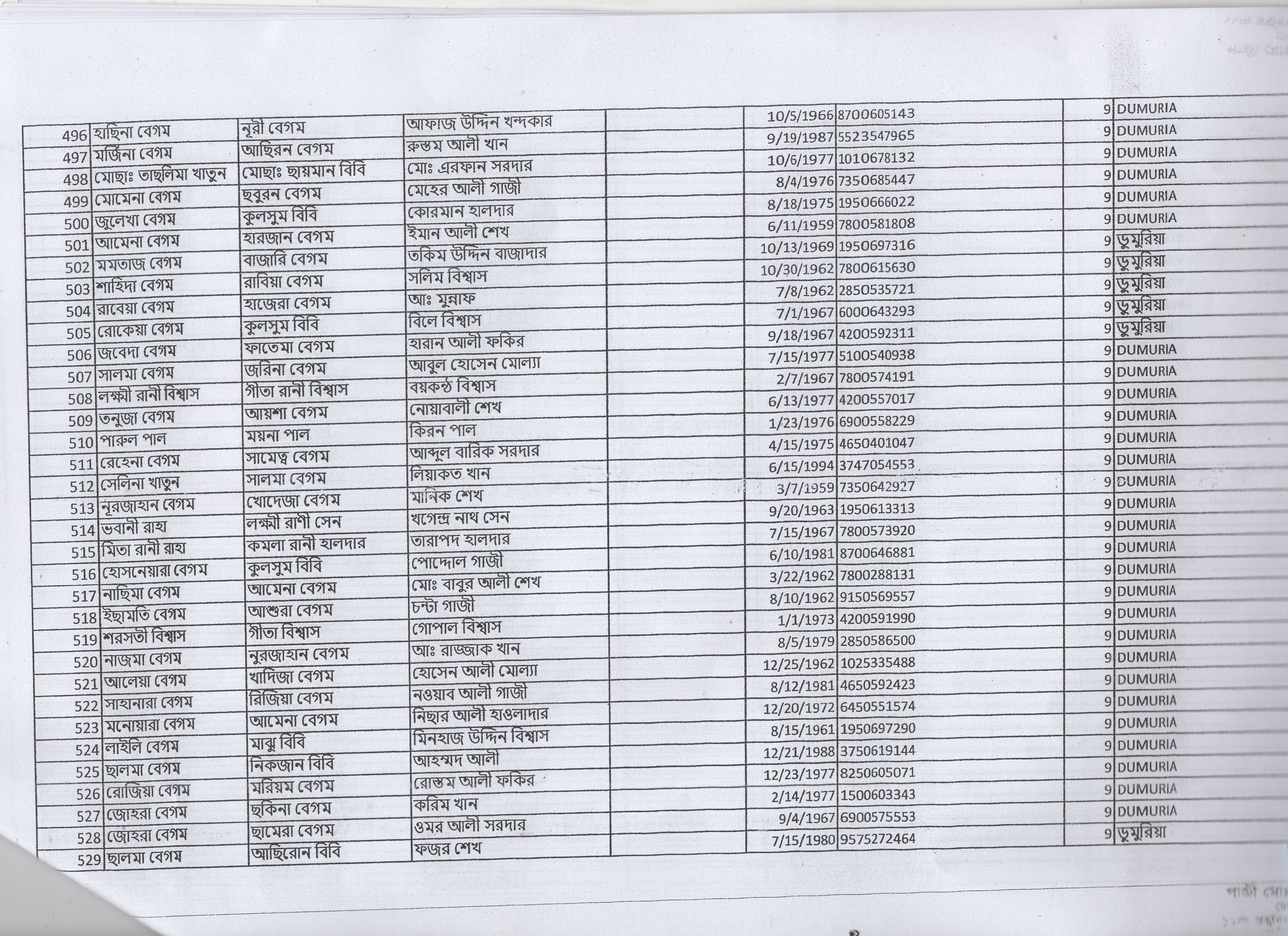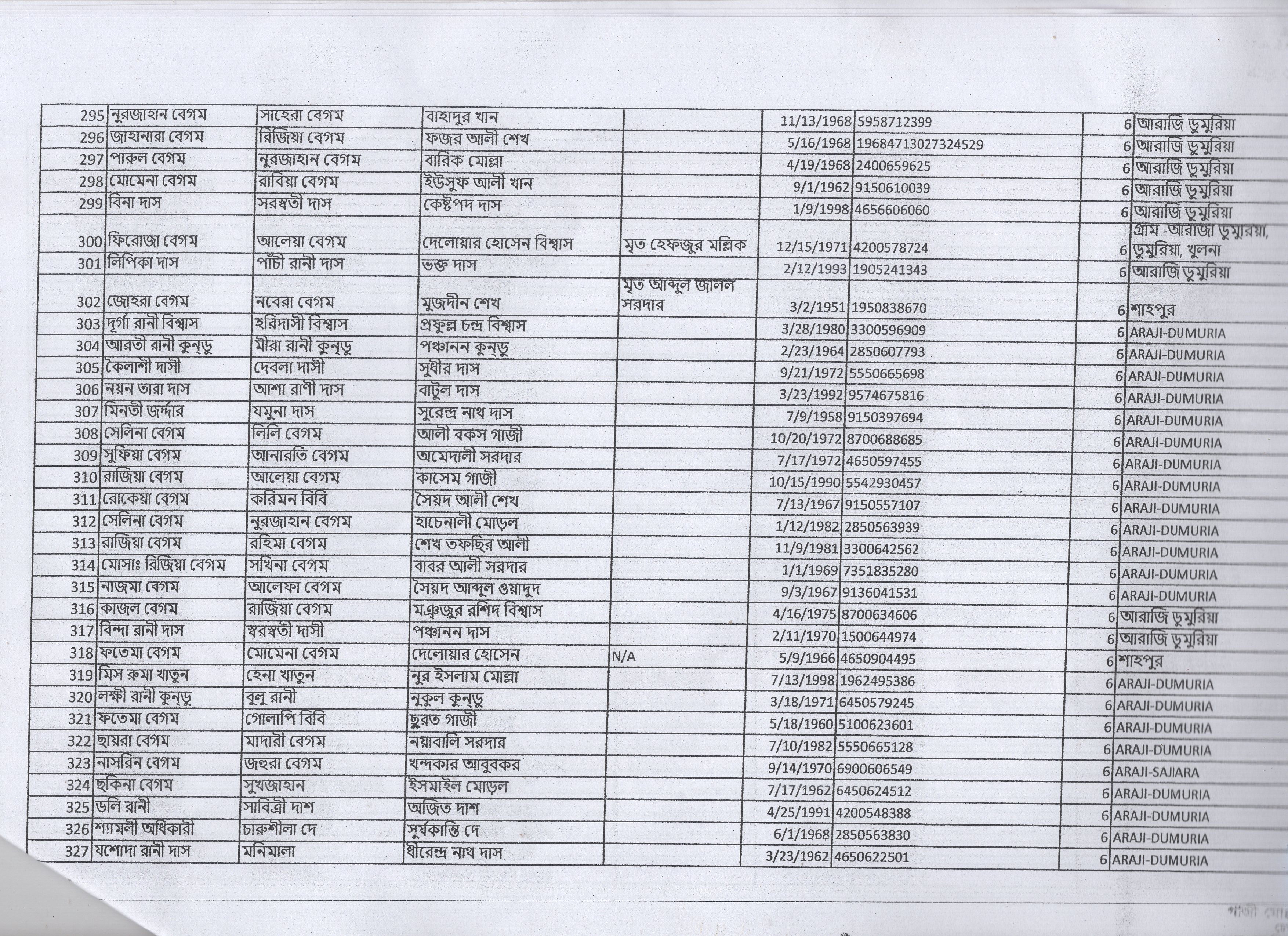 | 19. | রোকেয়া বেগম | মৃত বেলায়েত শেখ | দ: ডুমুরিয়া | ৯ | ৪৯৫/১ | ১৭৩৭২ |
