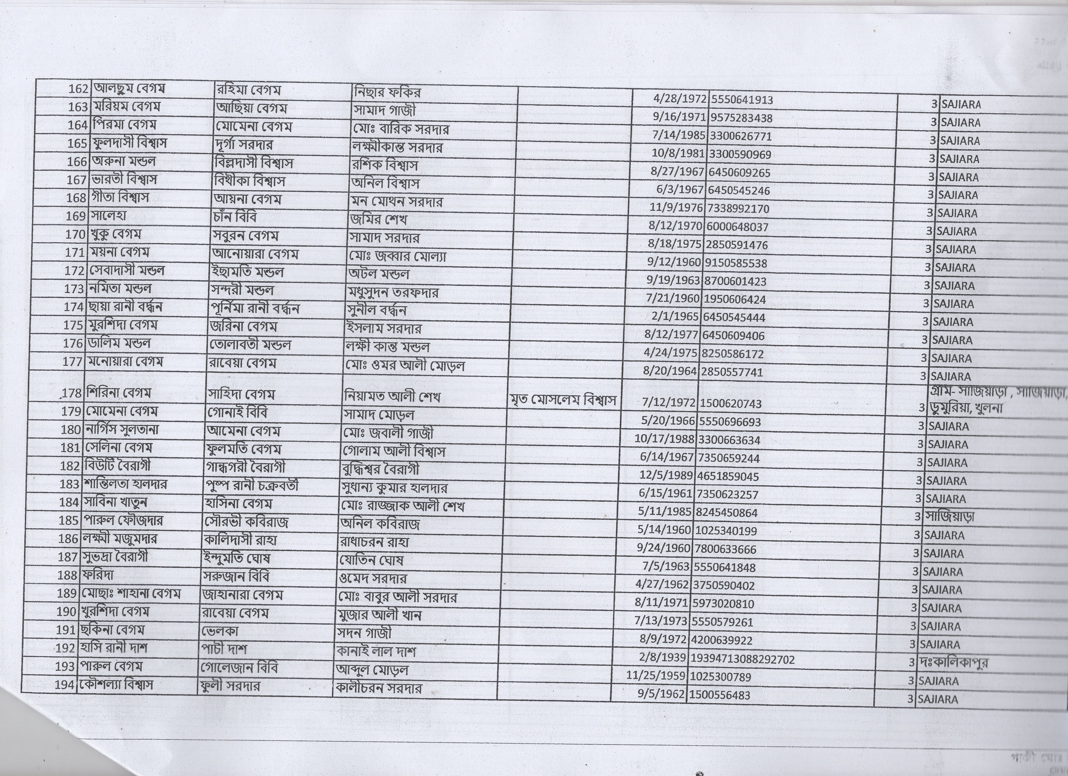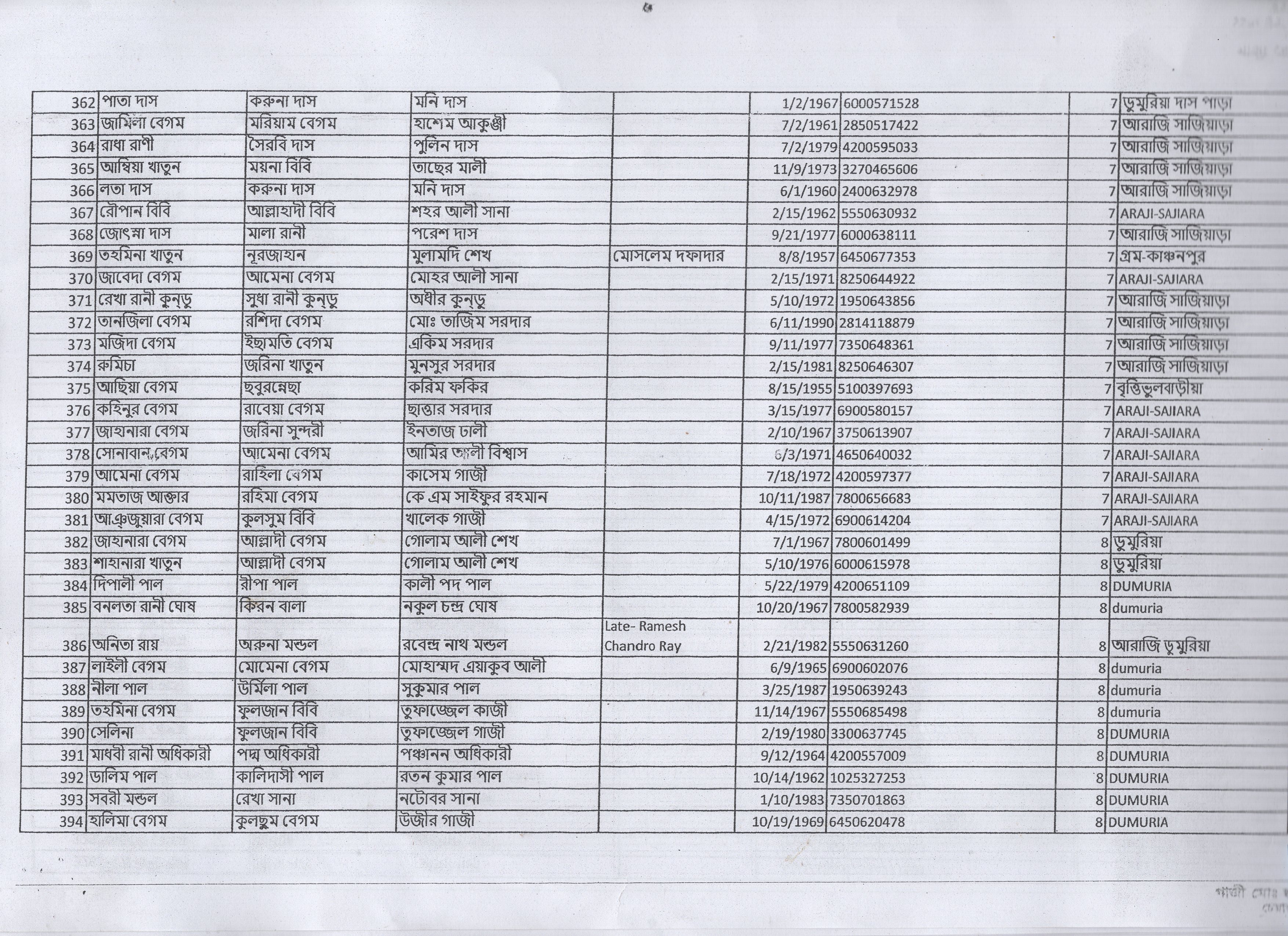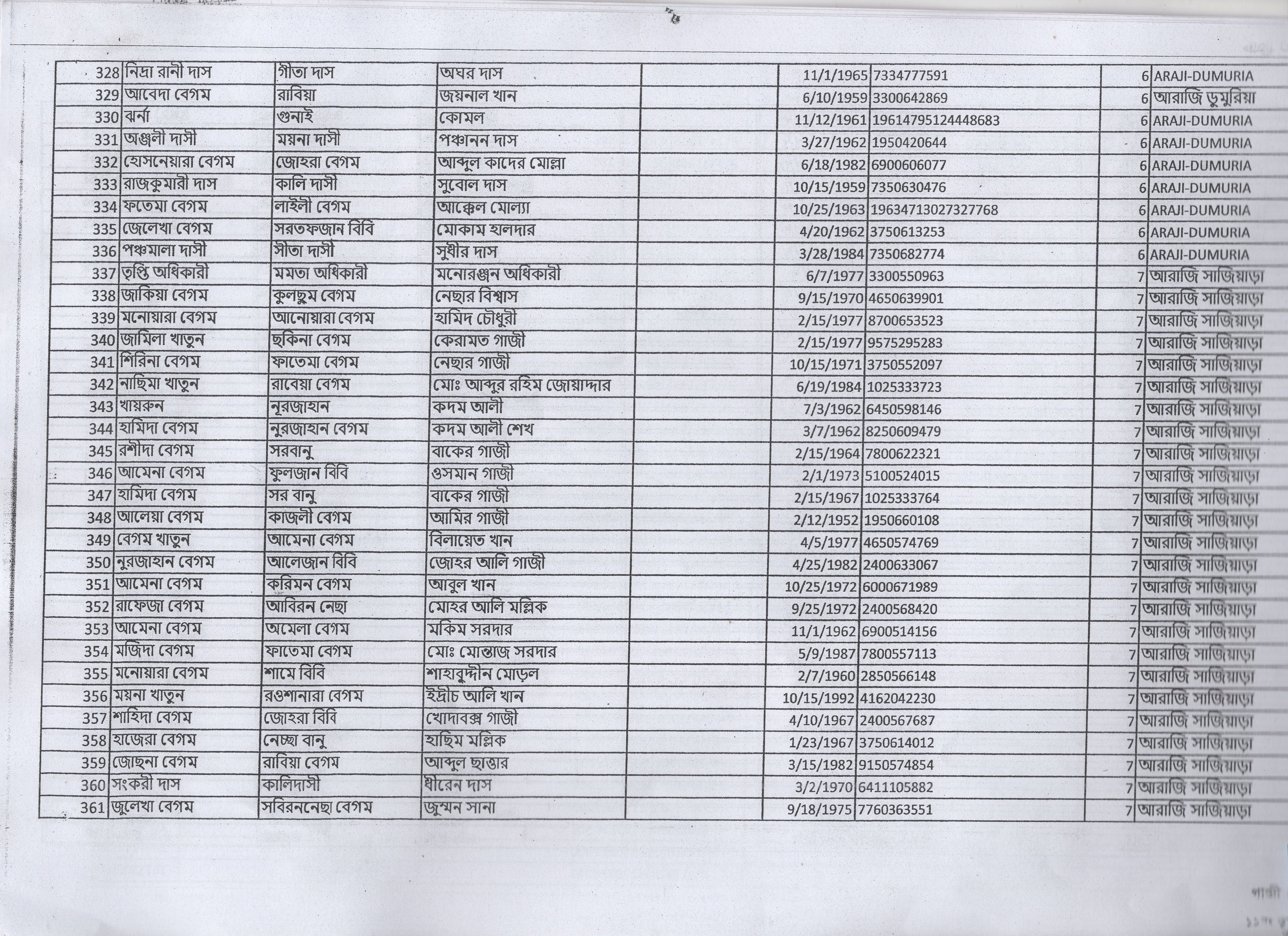 | 15. | হালিমা বেগম | মৃত হাচেন আলী | আ: সাজিয়াড়া | ৭ | ১৫৯৪ | ১৬০৭৫ |
