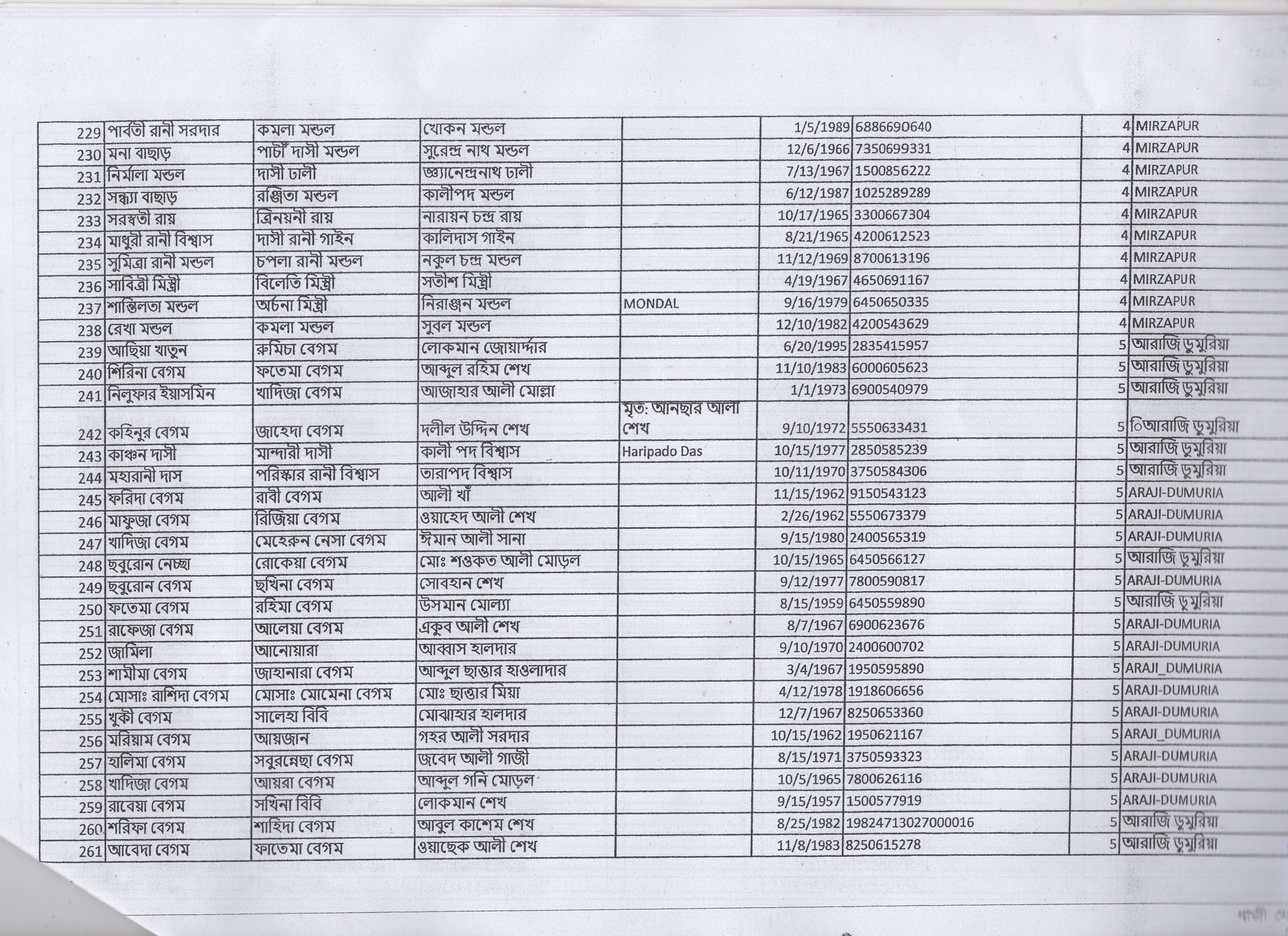 | 1. | হাজারী দাসী | মৃত নির্মল মন্ডল | মির্জাপুর | ৪ | ৪৬৯ | ১৫৮৩৬ |