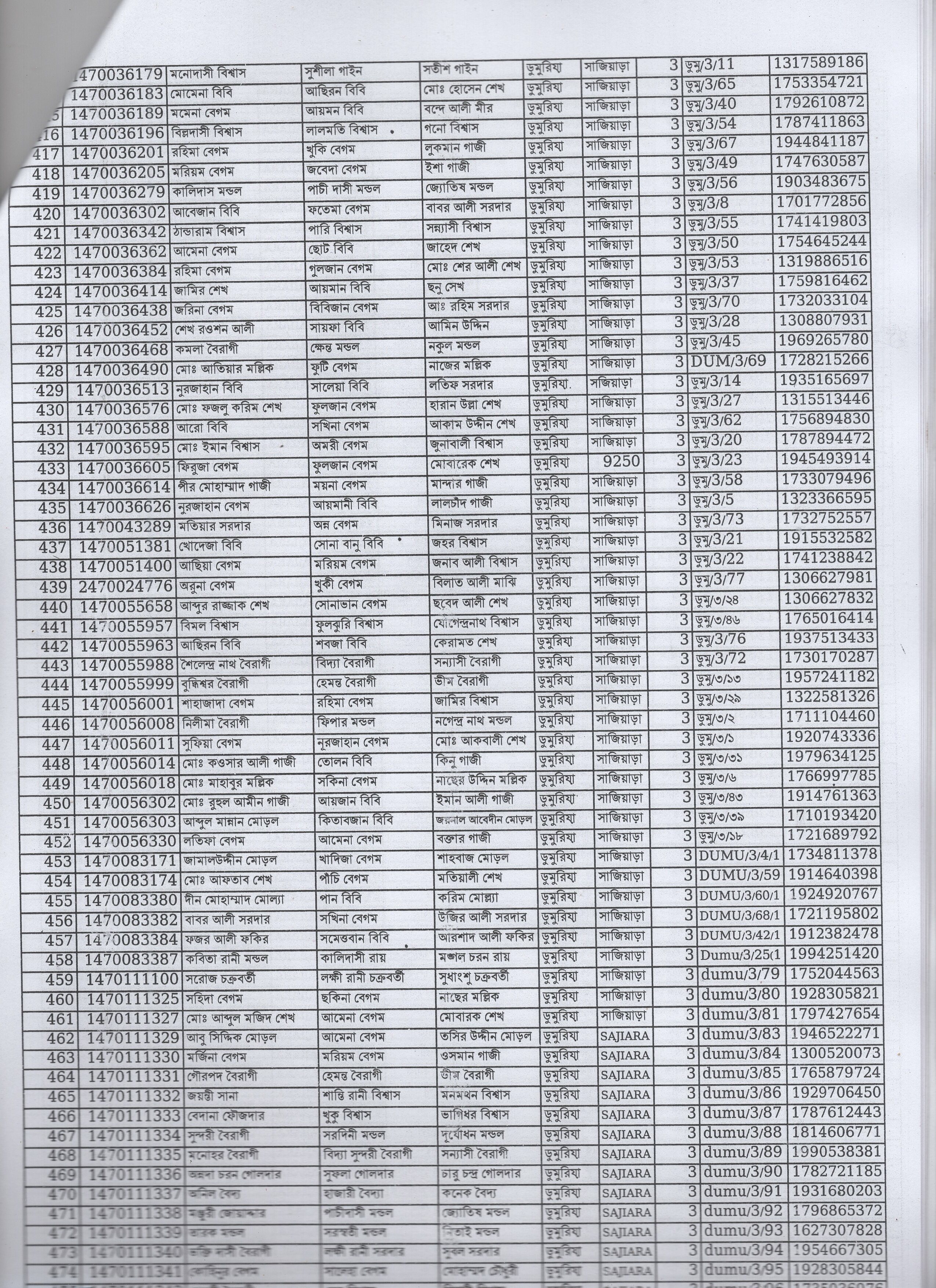 | 61. | সুধীর দাস | মৃত মান্দার দাস | গোলনা | ১ | ৬৫৩৭ | ০২৭০০১২৮২ |